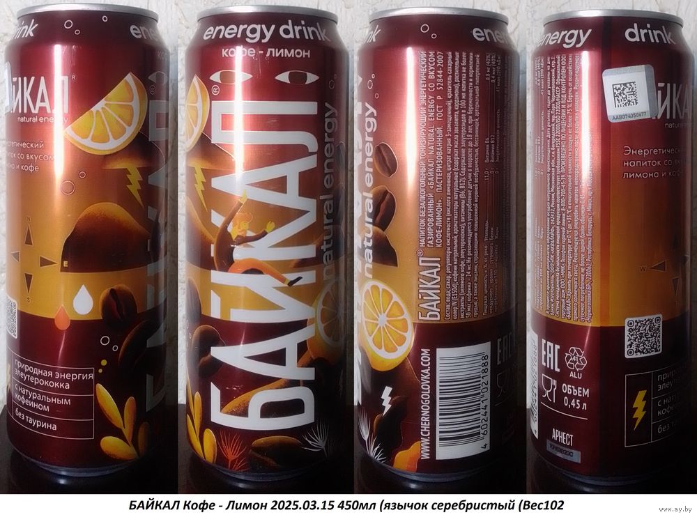 Банка от энергетика БАЙКАЛ Кофе - Лимон 2025.03.15 450мл (язычок серебристый (Bec102