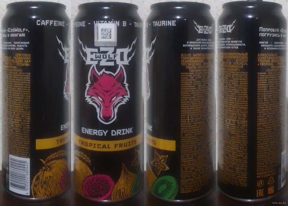 Банка от энергетика EZO WOLF Тропические Фрукты 2023.09.09 450мл язычок черный (moz49