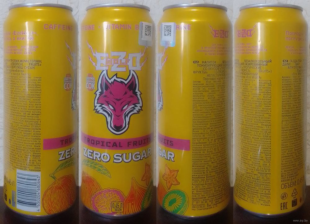 Банка от энергетика EZO WOLF Тропические Фрукты ZERO SUGAR 2024.11.19 450мл язычок сорван (moz50