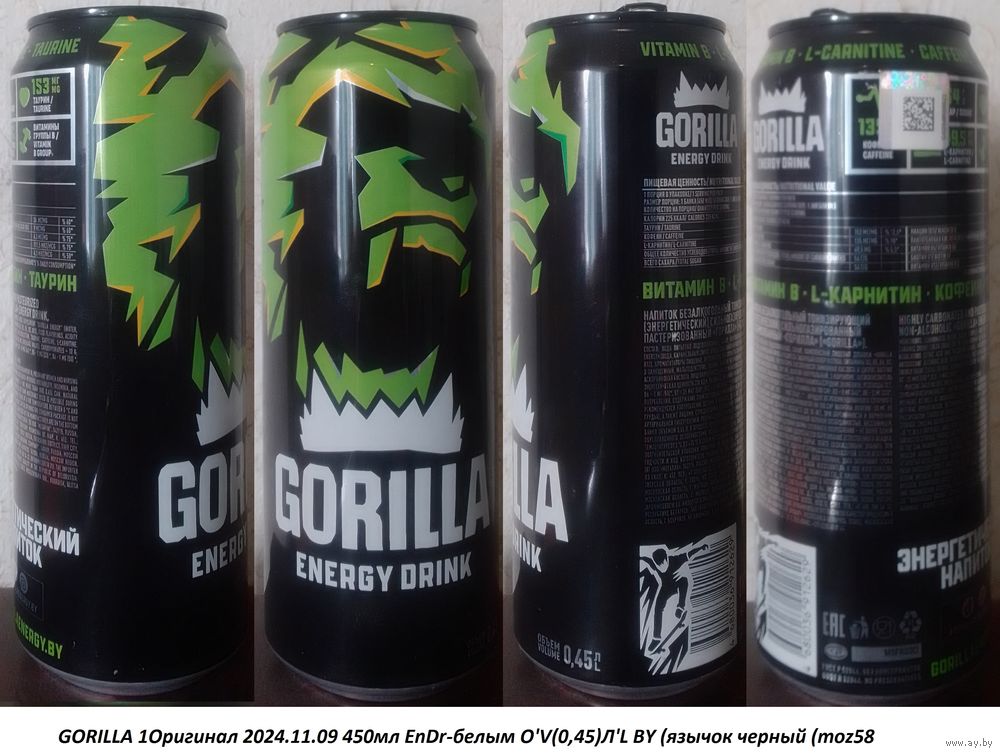 Банка от энергетика GORILLA 1Оригинал 2024.11.09 450мл EnDr-белым О'V(0,45)Л'L BY (язычок черный (moz58