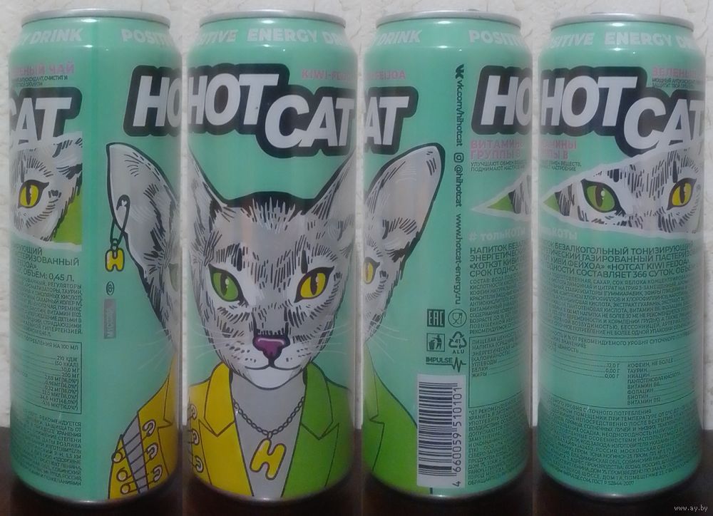 Банка от энергетика HOT CAT Kiwi Feijoa 2021.04.23 450мл (язычок серебристый (Bec108