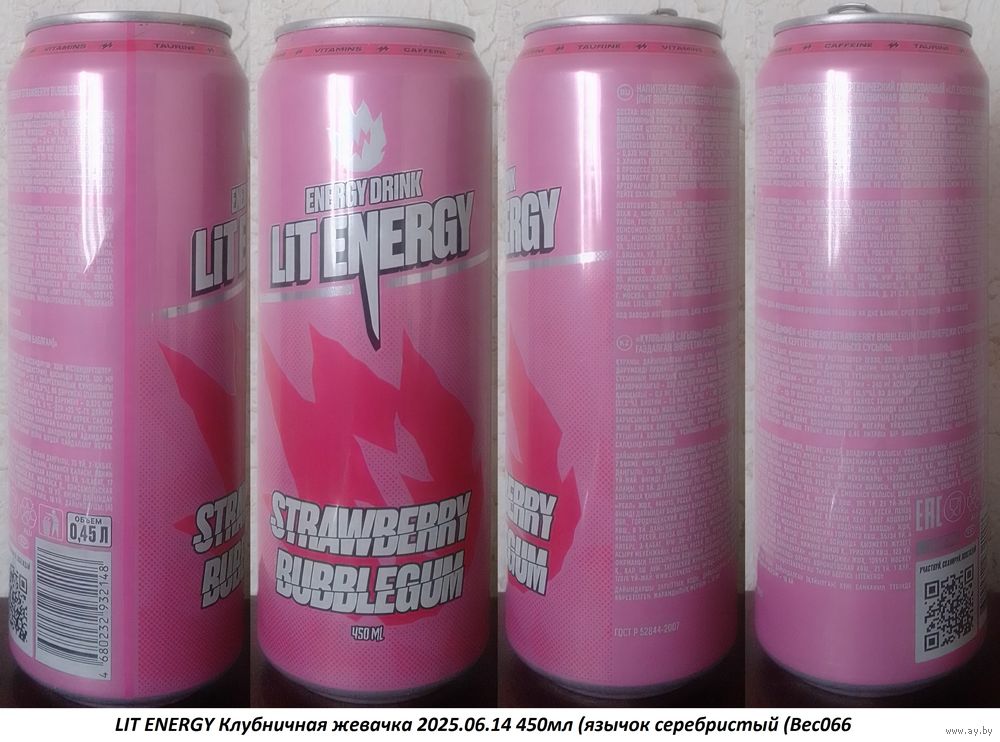 Банка от энергетика LIT ENERGY Клубничная жевачка 2025.06.14 450мл (язычок серебристый (Bec066