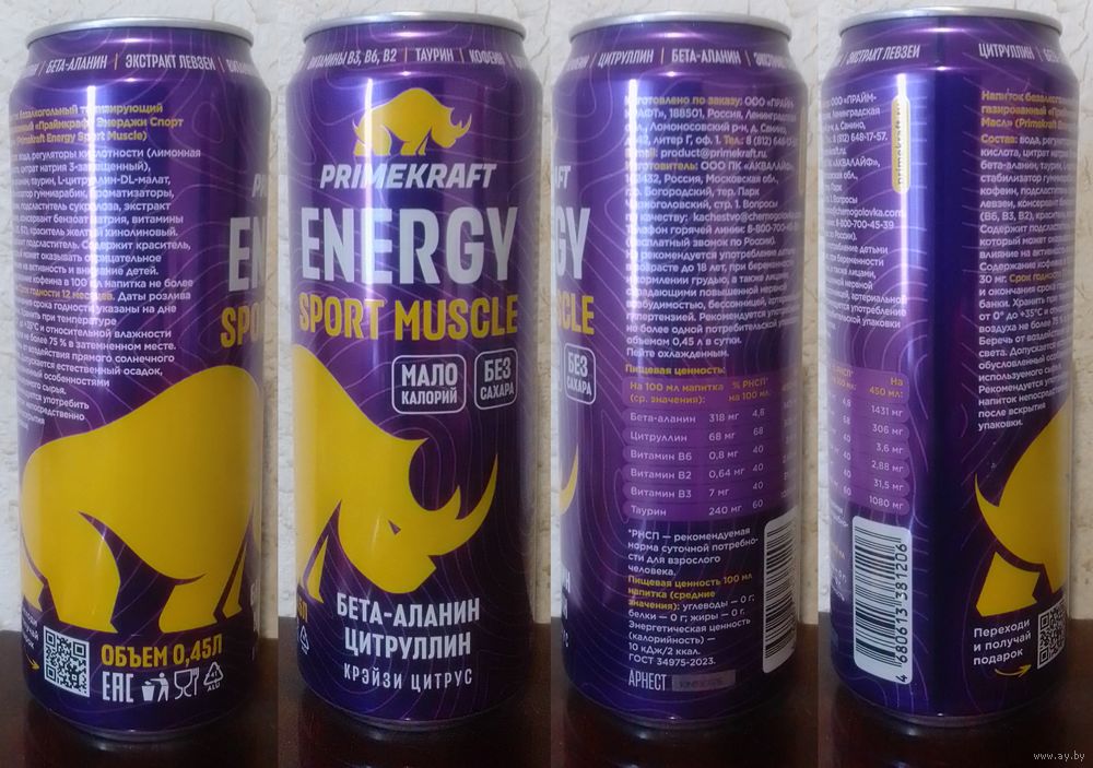 Банка от энергетика PRIMAKRAFT Sport Muscle Бета-Аланин Цитрудин Крейзи цитрус 450мл 2026.07.24 (ОБМЕН/ПРОДАЖА/ТОРГ) 1лот=1шт