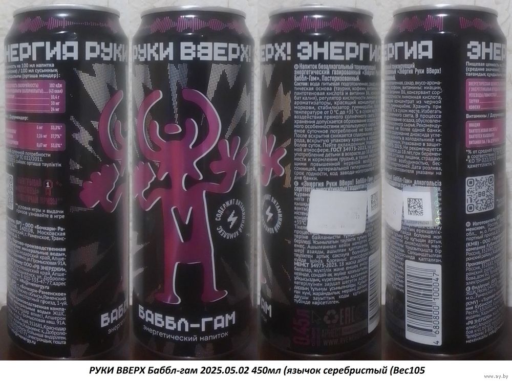 Банка от энергетика РУКИ ВВЕРХ Баббл-гам 2025.05.02 450мл (язычок серебристый (Bec105