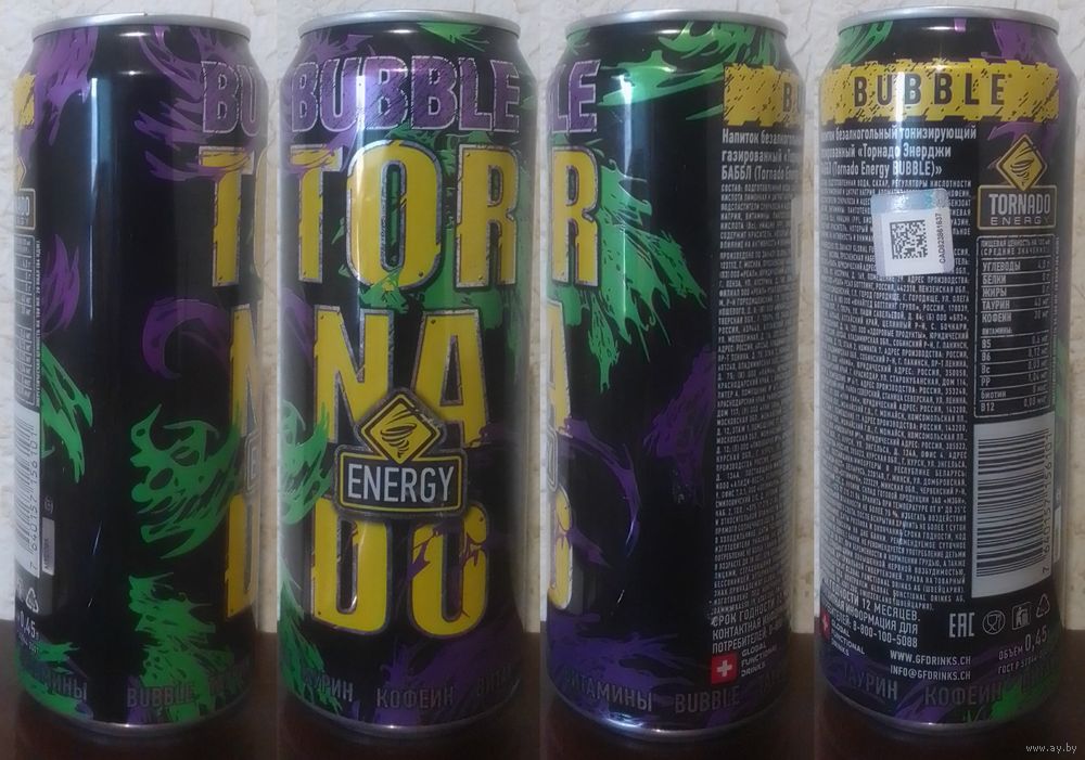 Банка от энергетика TORNADO BUBBLE ENERGY 2024.07.27 450мл (язычок сорван (Bec081