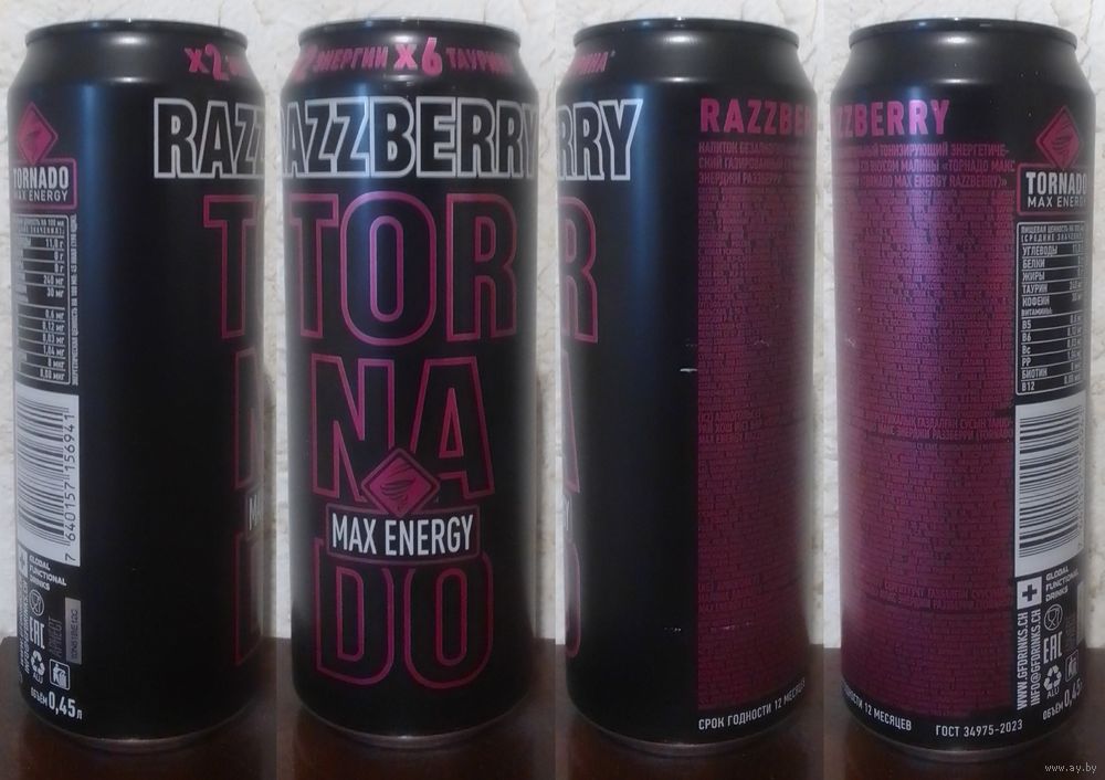 Банка от энергетика TORNADO RAZZBERRY MAX ENERGY 450мл 2026.07.11 (ОБМЕН/ПРОДАЖА/ТОРГ) 1лот=1шт