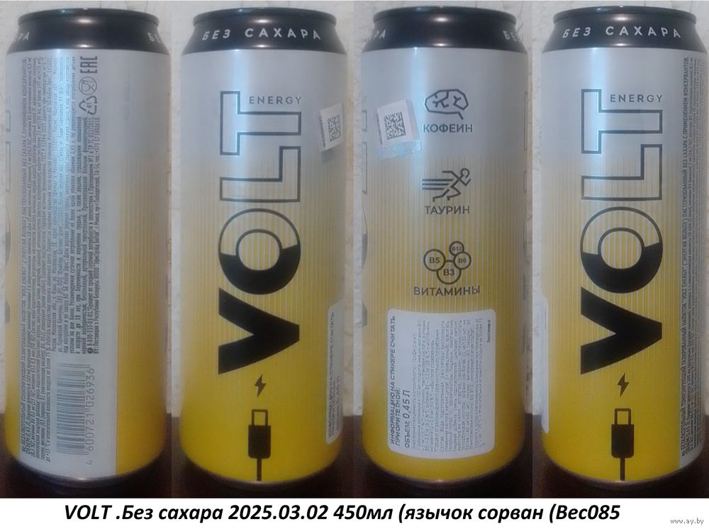Банка от энергетика VOLT .Без сахара 2025.03.02 450мл (язычок сорван (Bec085