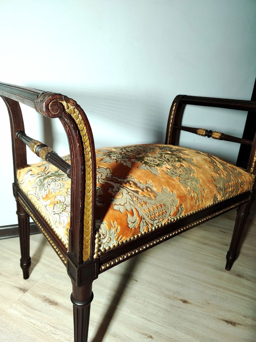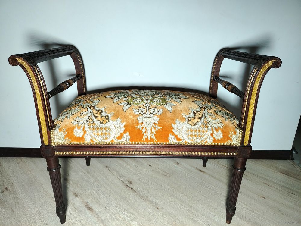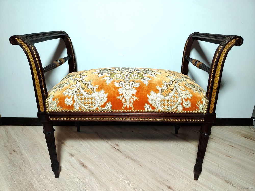 Прекрасный предмет мебели прошлых лет. Банкетка. Европа. Массив дерева (орех) с красивой резьбой, ткань в отличном состоянии без дефектов, на пружинах. Высота с подлокотниками 65см ширина 80см глубина 45см.