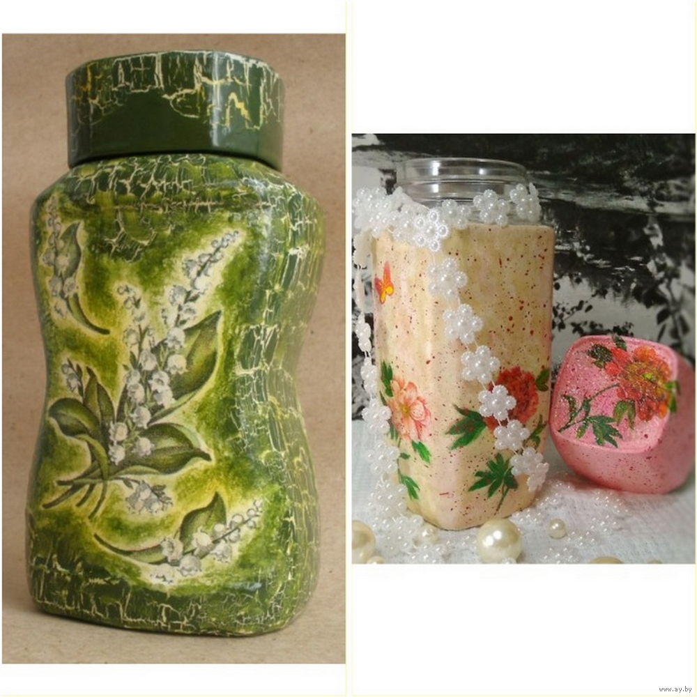 Банки для специй или декупажа на фото 1, из-под кофе, как новые. Для изготовления вазочек и прочего, объём банки-200гр сыпучего или 900мл жидкости. Образцы декупажа на фото.
