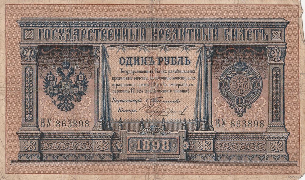 Банкнота 1 рубль 1898 года. R. редкое сочетание: Тимашев - Чихиржин