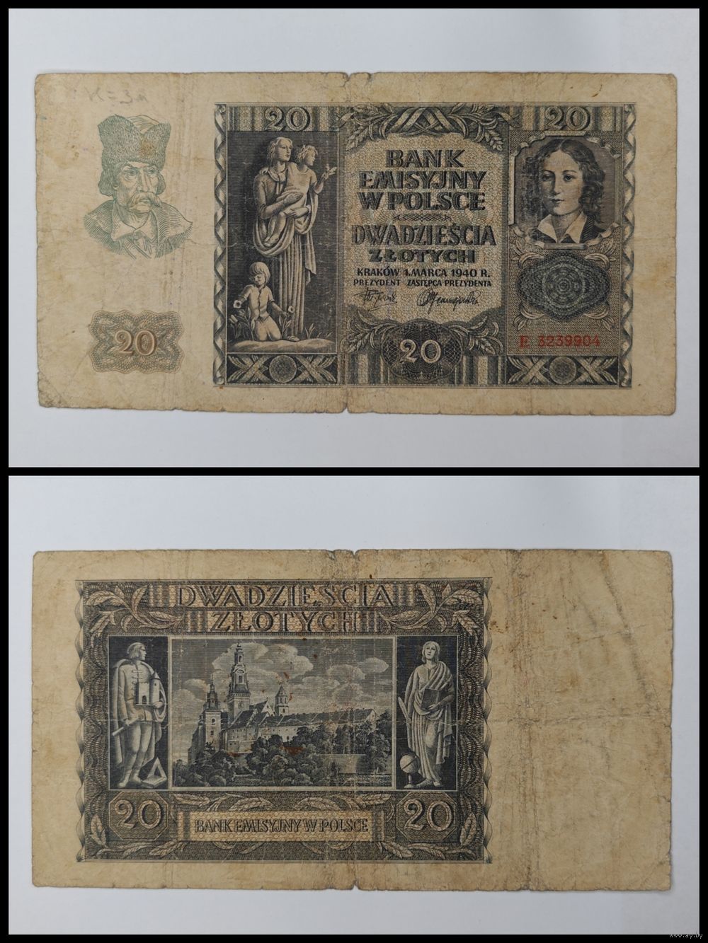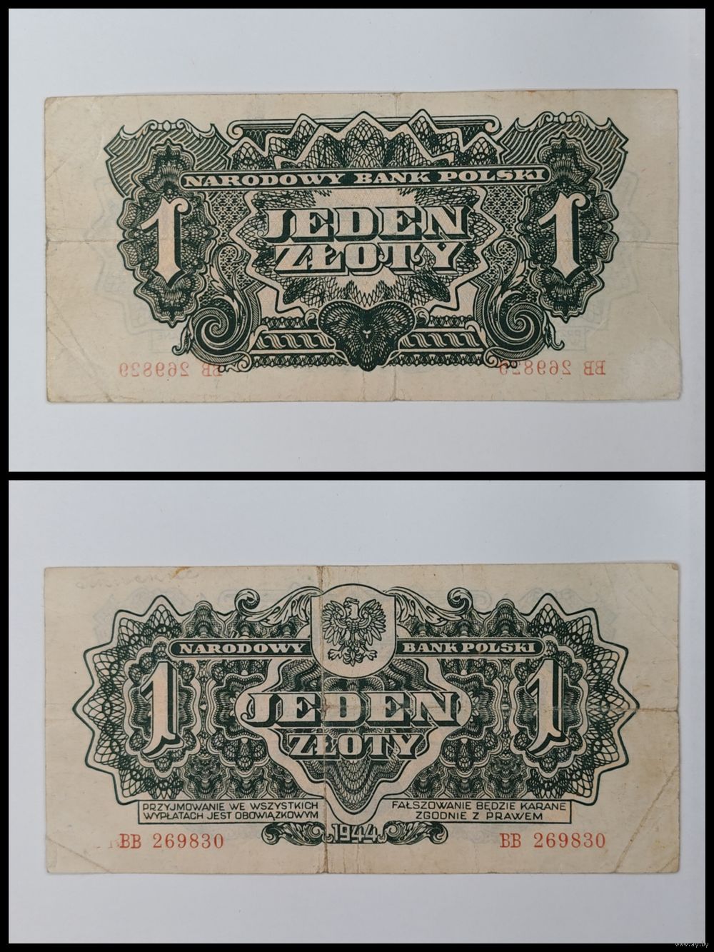 Банкнота 1 злотый 1944 г, 20 злотых 1940 г. Польша Одним лотом. С рубля