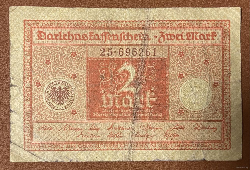 Банкнота 2 марки 1920 год. Веймарская республика.