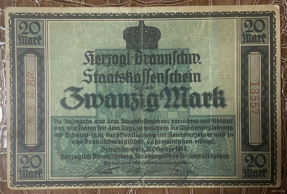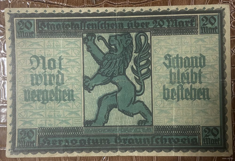 Банкнота 20 марок 1918 год. Герцогства Брауншвейг-Люнебург