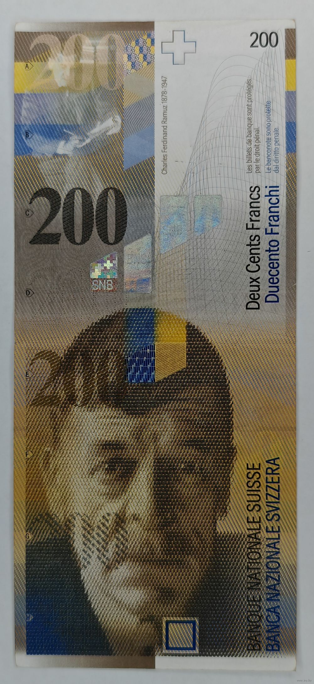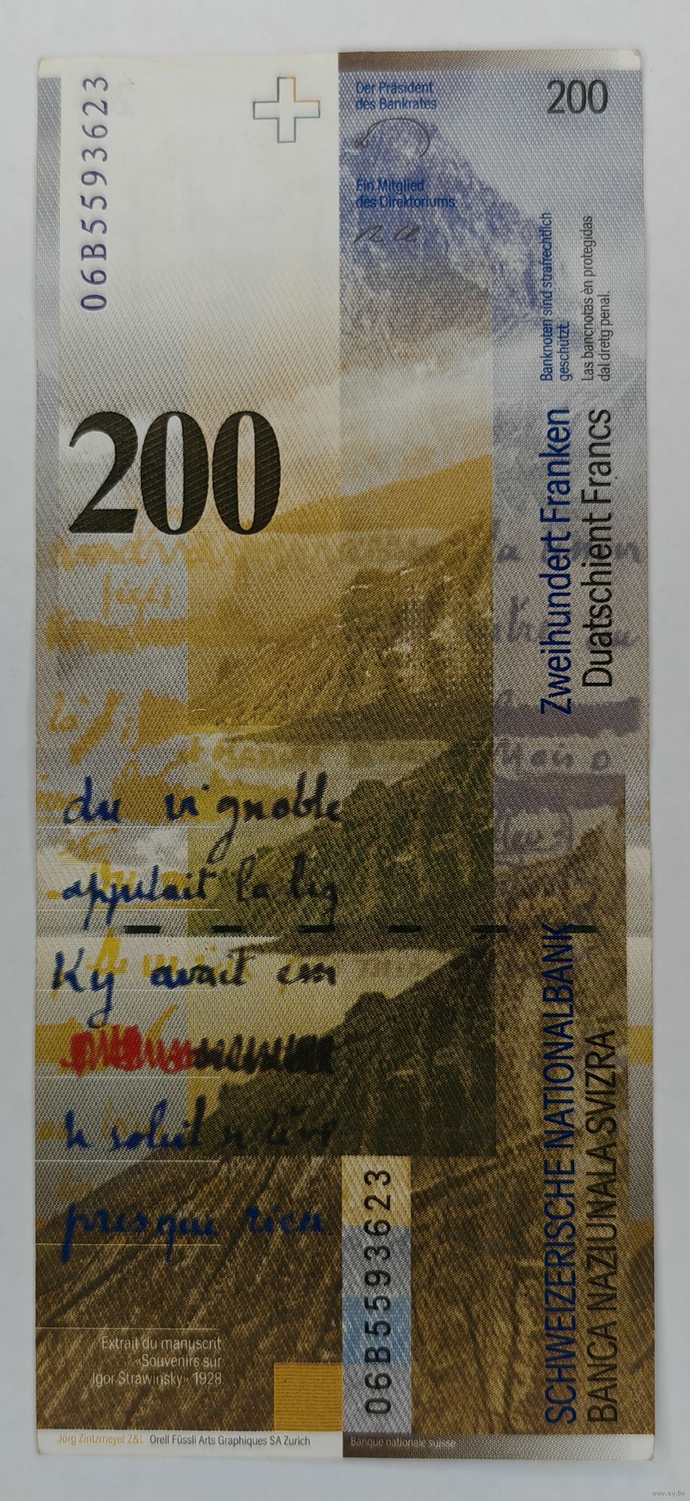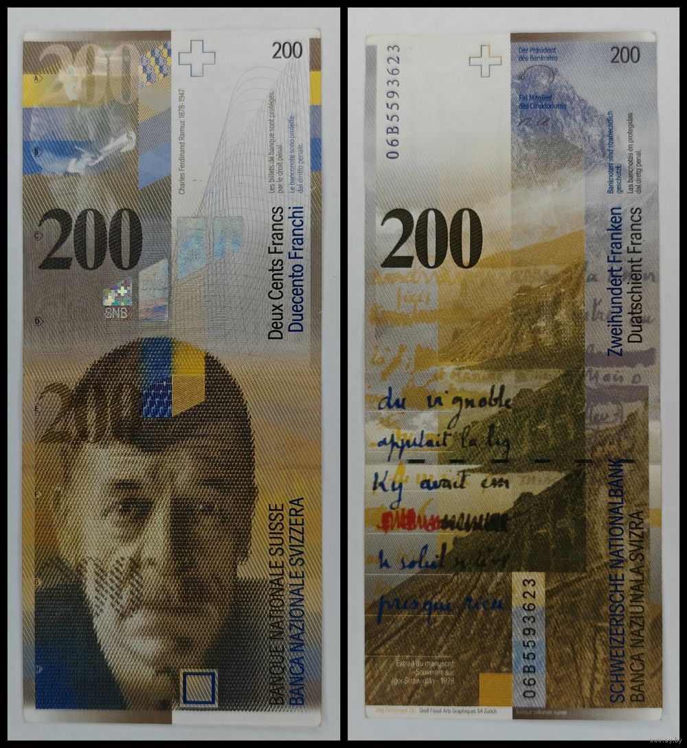 Банкнота 200 Швейцарских франков 2006 год. С рубля.