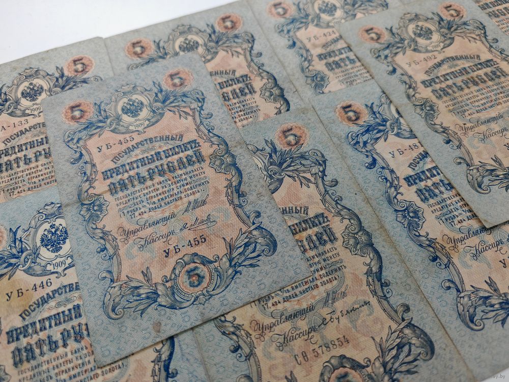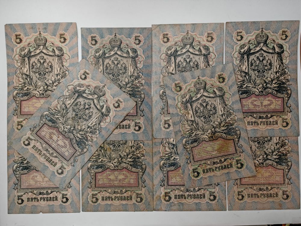 Банкнота 5 рублей 1909 год. Одним лотом 10 шт. С рубля.