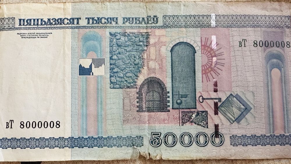 Банкнота Республики Беларусь 50 000 рублей серия вТ 8000008