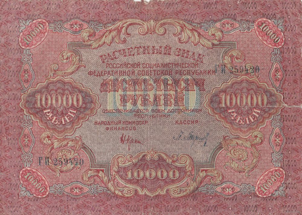 Банкнота РСФСР 10000 рублей 1919 года. ГИ