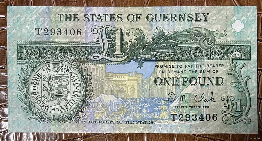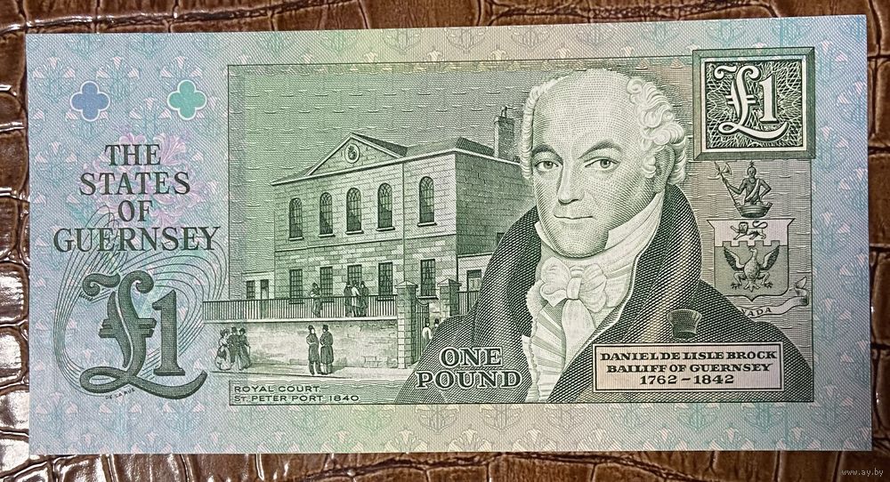 Банкнота Штат Гернси 1 фунт 1991–1995 год. Дэниел Де Лисл Брок. НЕ БЫЛА В ОБОРОТЕ.