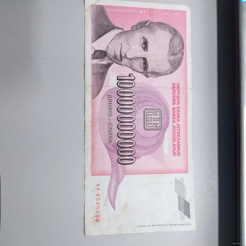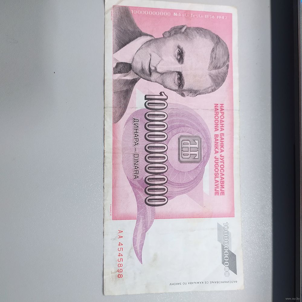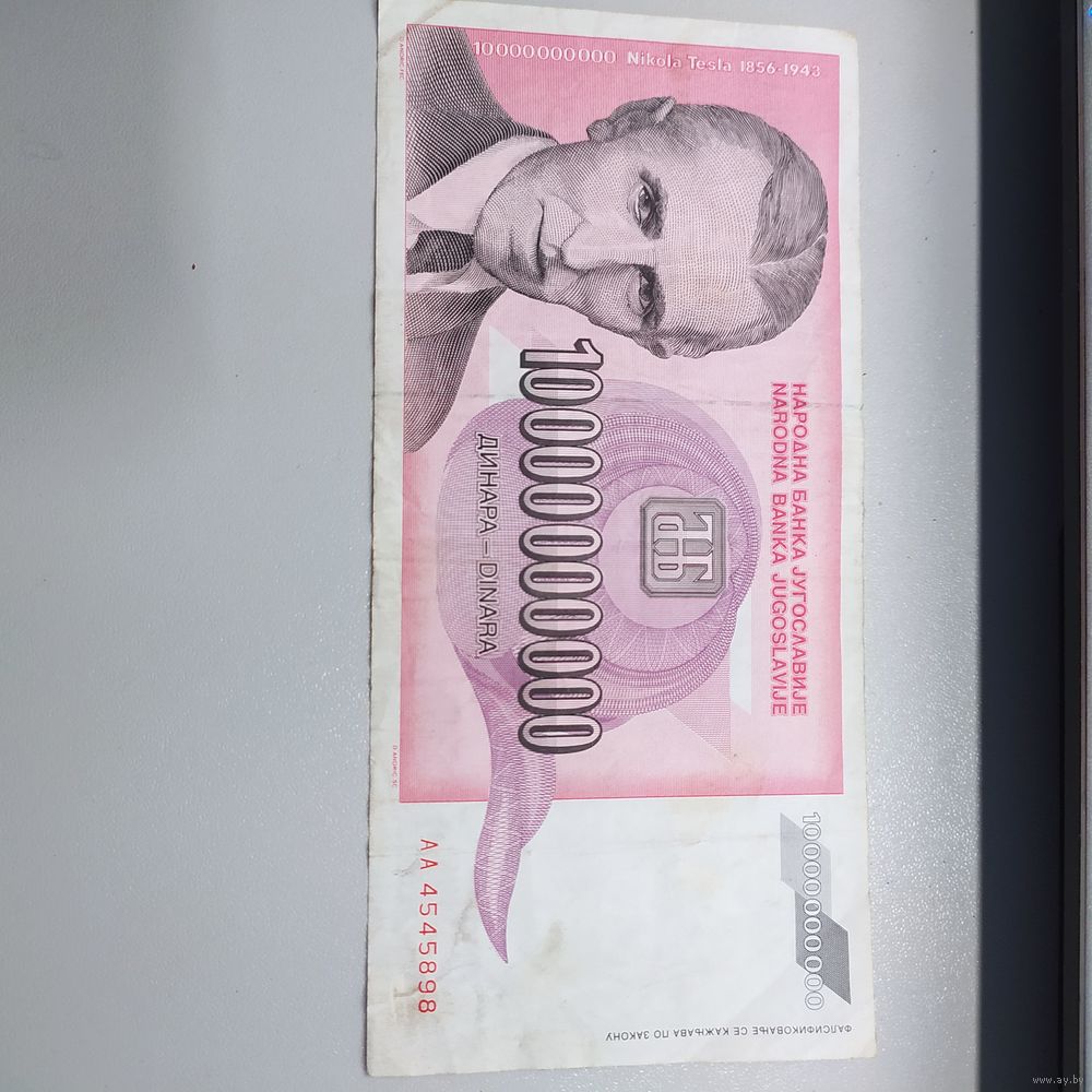 Банкнота Югославии 10000000000 (10 миллиардов Динара), 1993г., с Н.Тесла, см.фото, интересный номер! В коллекцию, но дорог...
