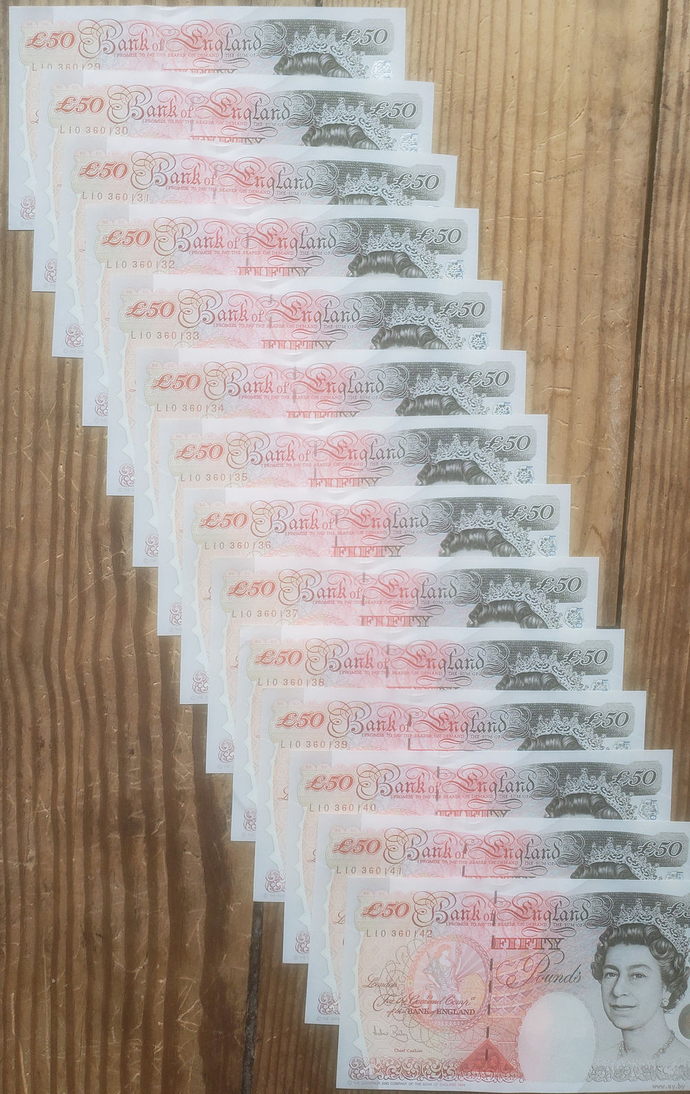 -10шт банкнот номиналом 50 фунтов стерлингов