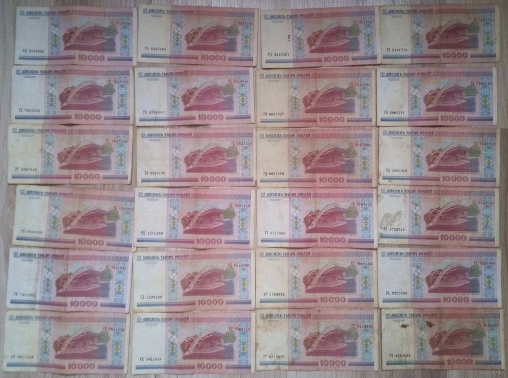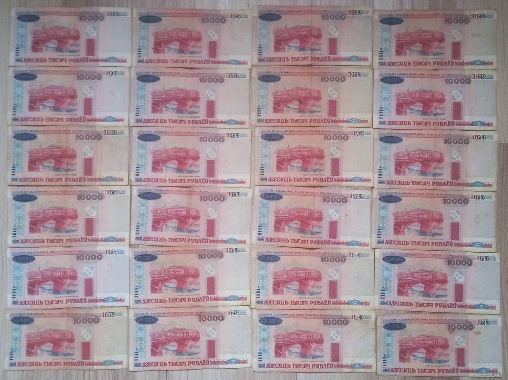 Банкноты Беларусь 2000 года 10000 рублей всего 24 штуки
