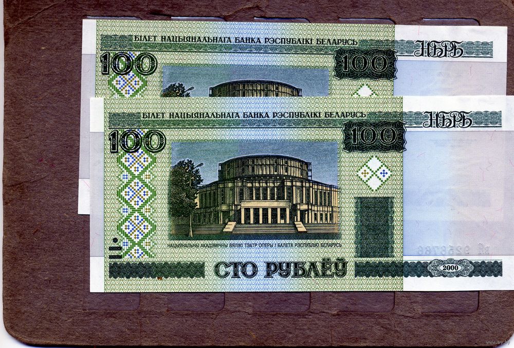 Банкноты. Беларусь. Образца 2000 года 100руб 2шт. NN подряд вЯ 9256764-65