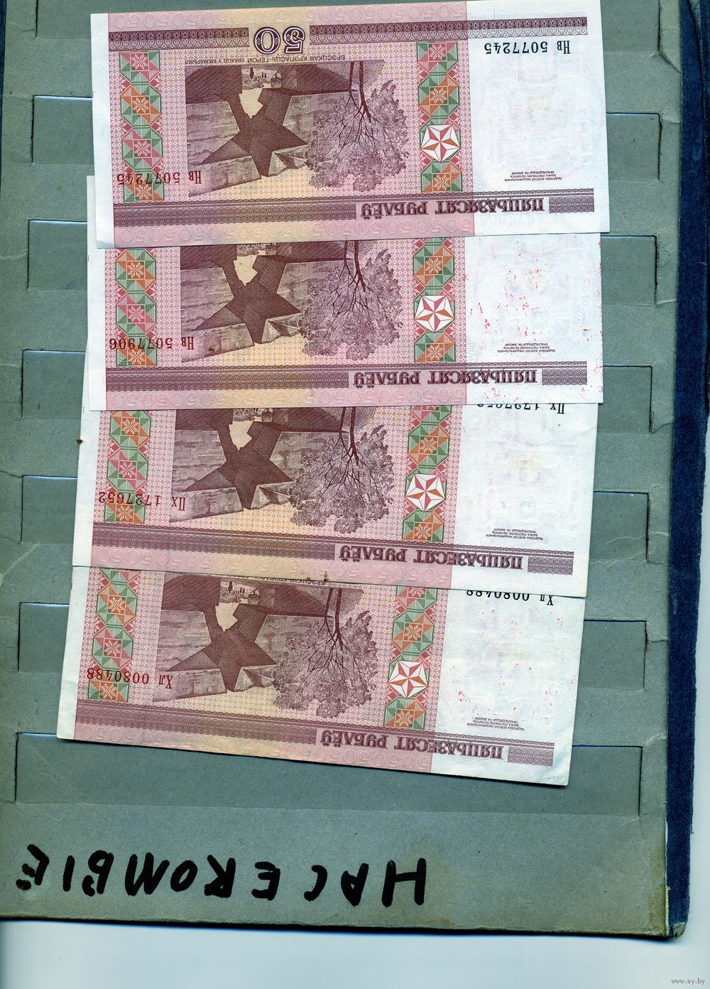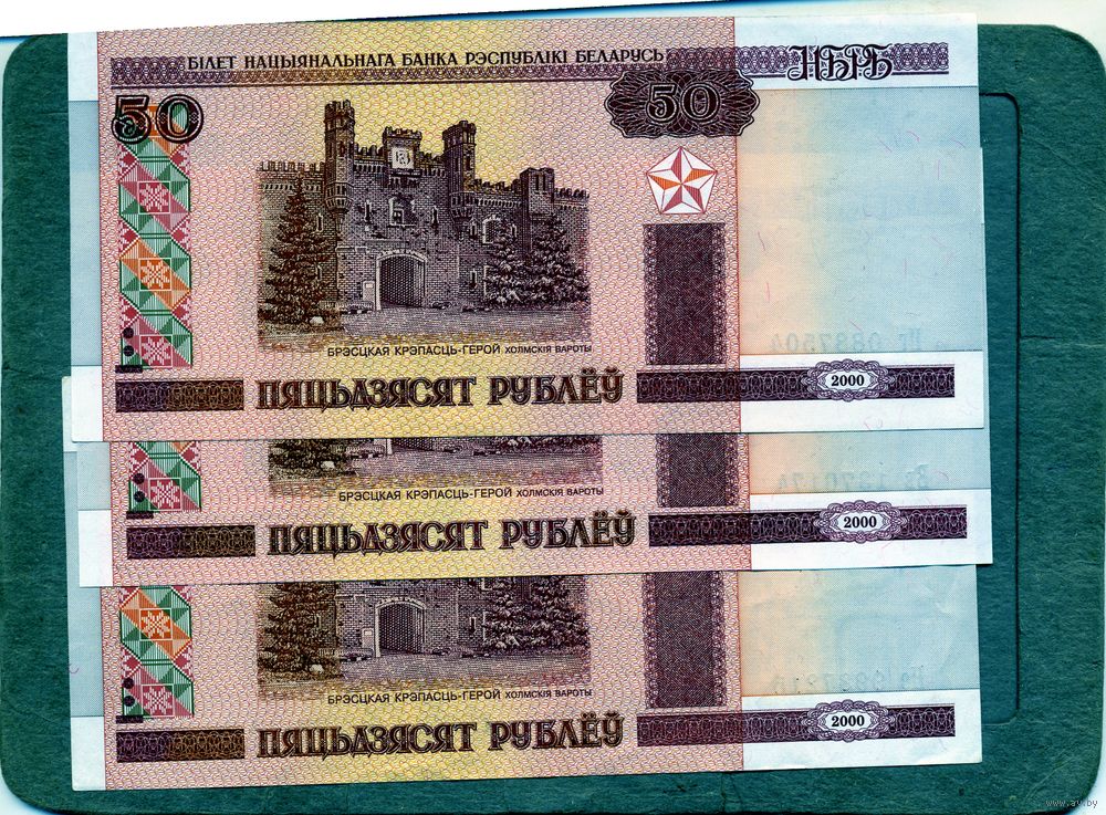 Банкноты. Беларусь. Образца 2000 года 50руб 3 шт серии Вв,Нг,Не по 1р шт