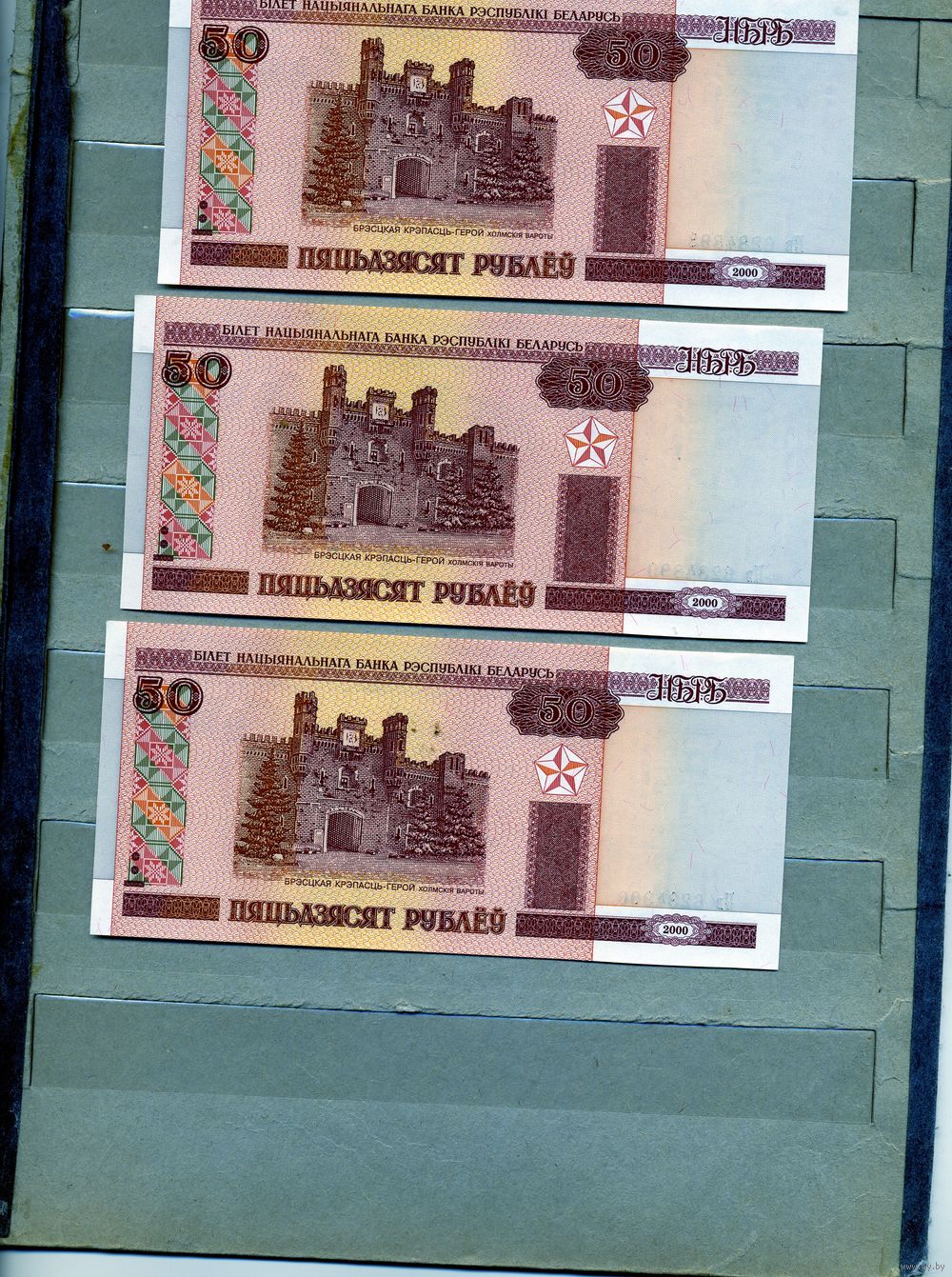Банкноты. Беларусь. Образца 2000 года 50руб 3 шт серия Нв НОМЕРА ПОДРЯД одним лотом