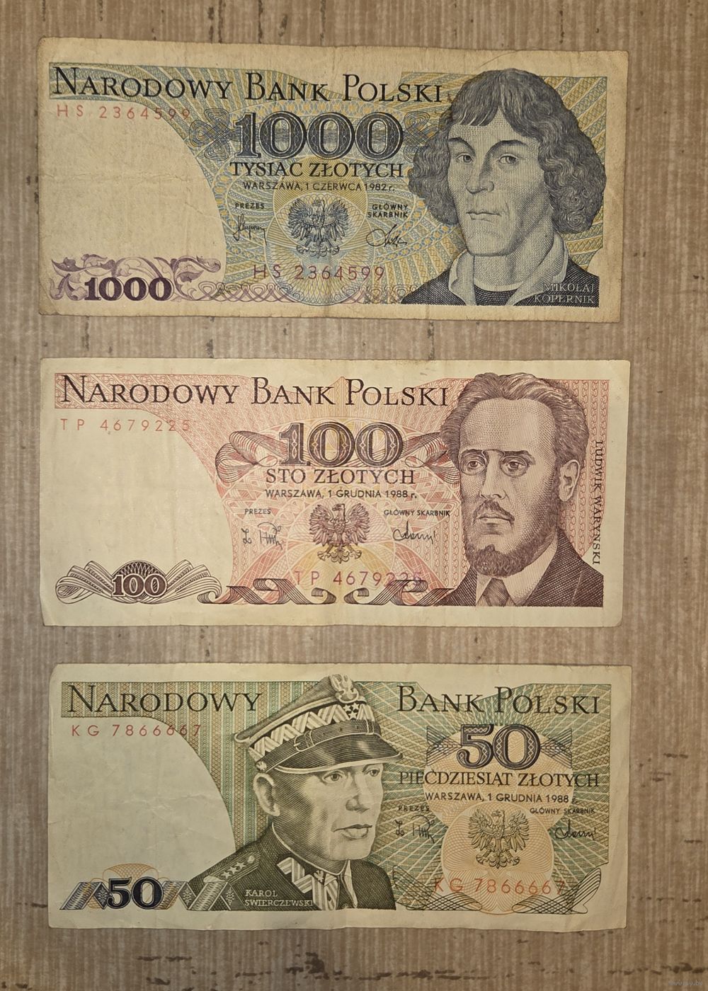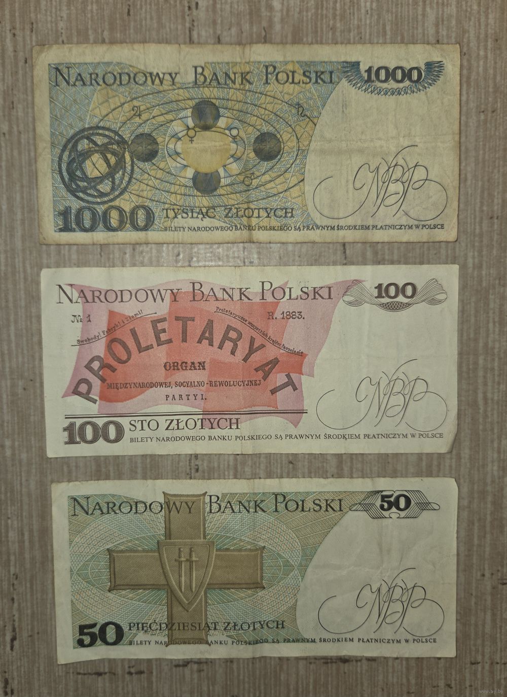 Банкноты Польши 1000, 100, 50 злотых 1982, 1988гг
