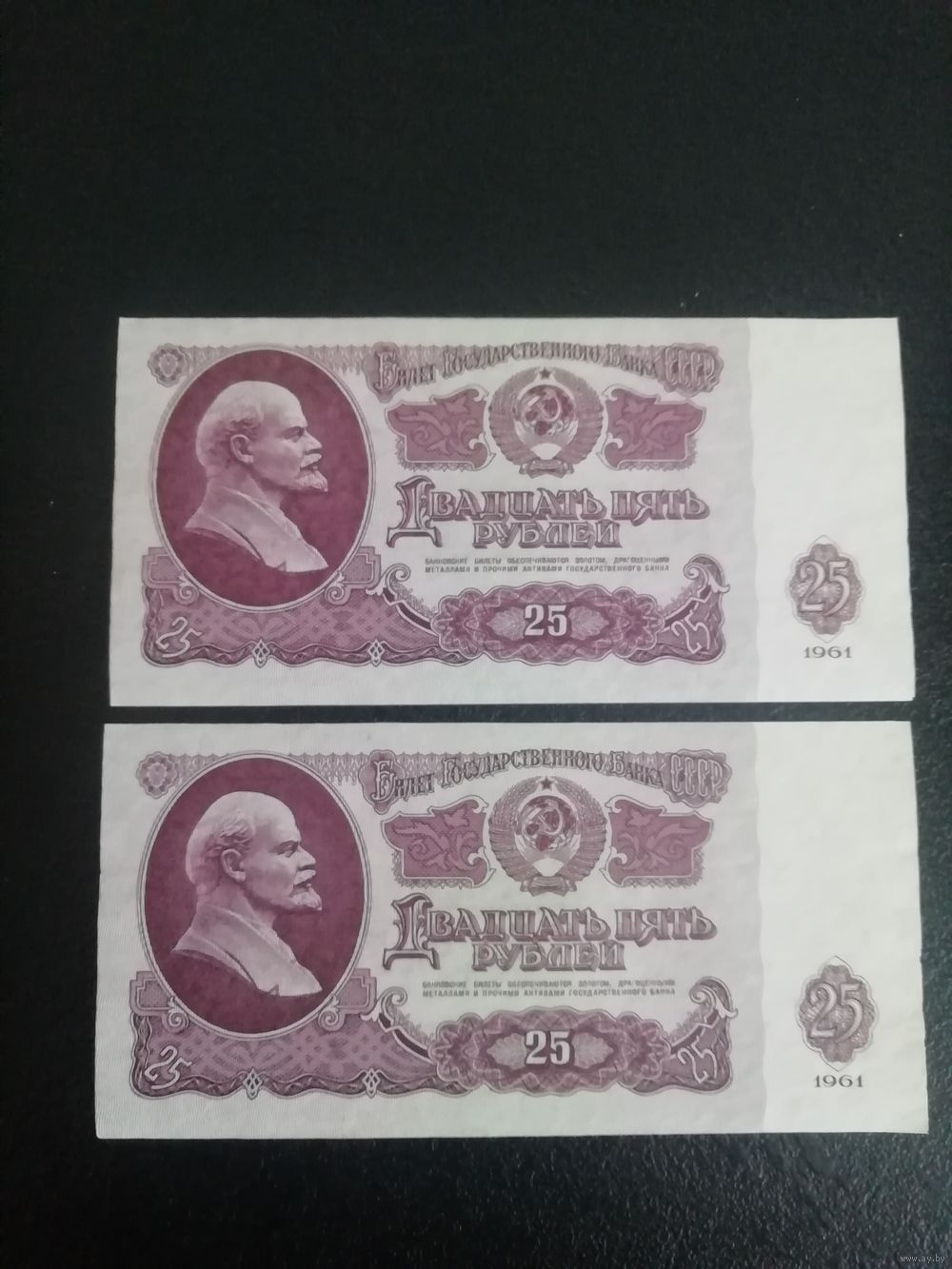 Банкноты СССР 25 рублей 1961 года, с одной пачки номера подряд, банкноты в отличном сохране, без заломов переломов, но во избежание всякого рода недоразумений и спорных вопросов просьба оценивать состояние самостоятельно по фото, фото стараюсь делать достаточно информативными, доп фото по запросу, на все вопросы отвечу до конца аукциона, если вопросов не было, значит всё понятно и всё устроило, смотрите все мои лоты много чего интересного.