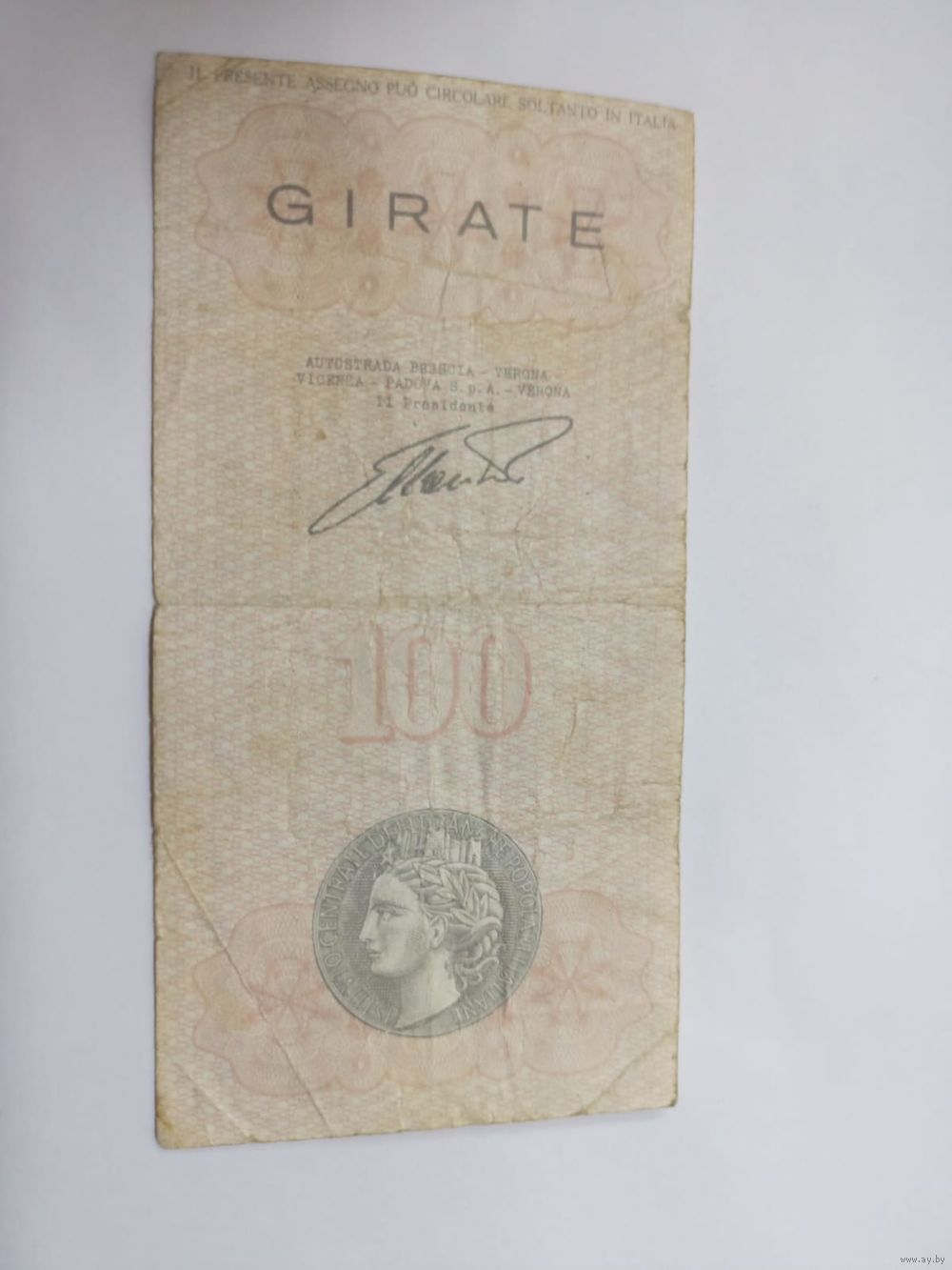 Банковский чек 100 лир,1977г,Италия
