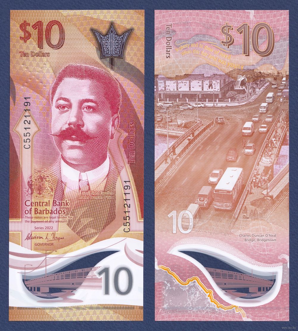 Барбадос, 10 долларов 2022 г., P-W82 (C, полимер, политик Чарльз Дункан О'Нил), UNC