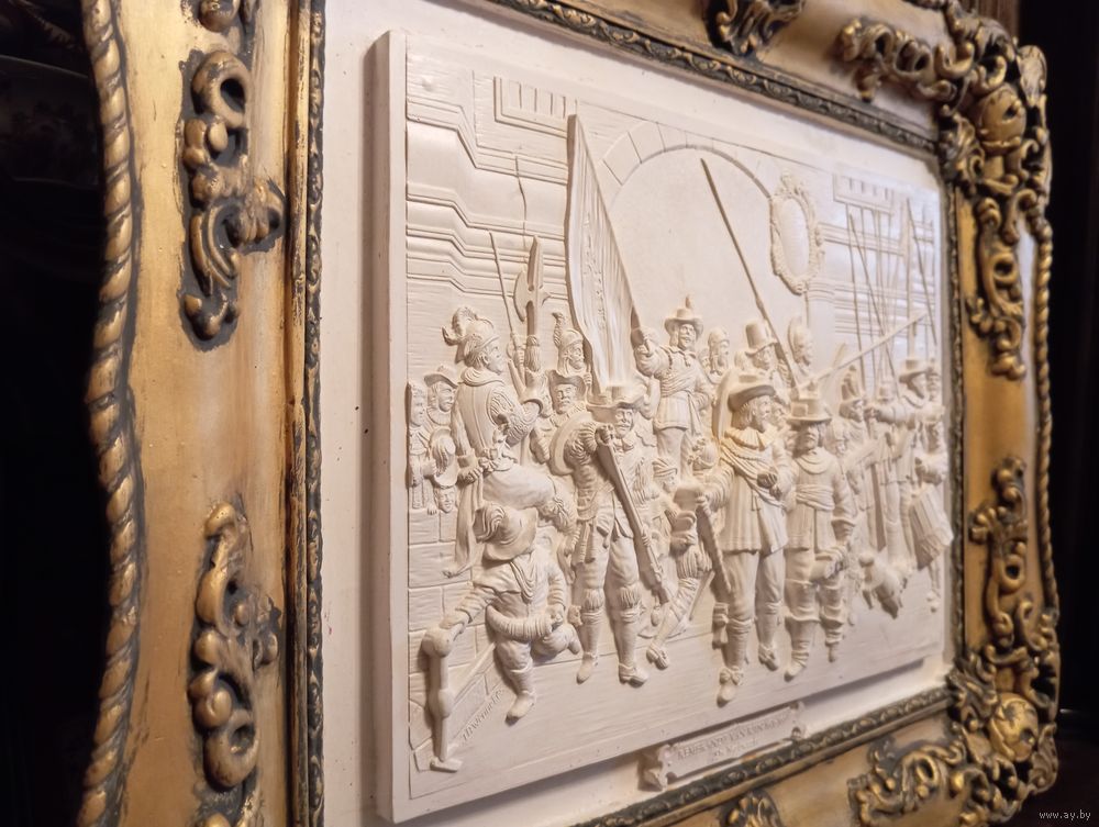Барельеф НОЧНОЙ ДОЗОР Рембрандт 52х45х4 см гипс перламутр акрил . Из серии реплики мировых шедевров . Всё Белпочтой или самовывоз .