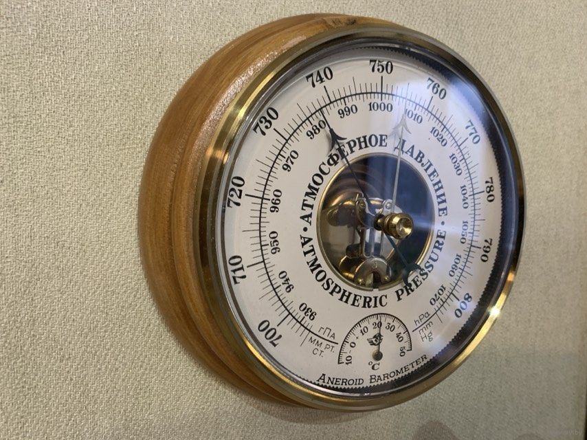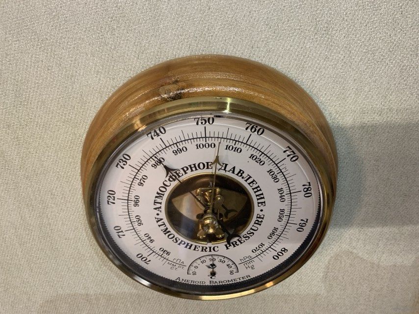 Барометр Aneroid в корпусе из ценной породы дерева. Не крашен.