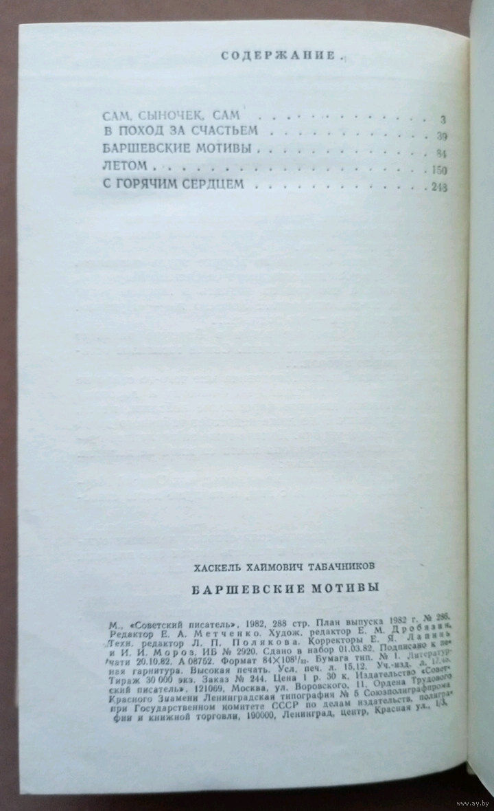 "Баршевские мотивы". Хаскель Табачников. Изд-во "Советский писатель". Перевод с еврейского М.С. Беленького. 1982г.
