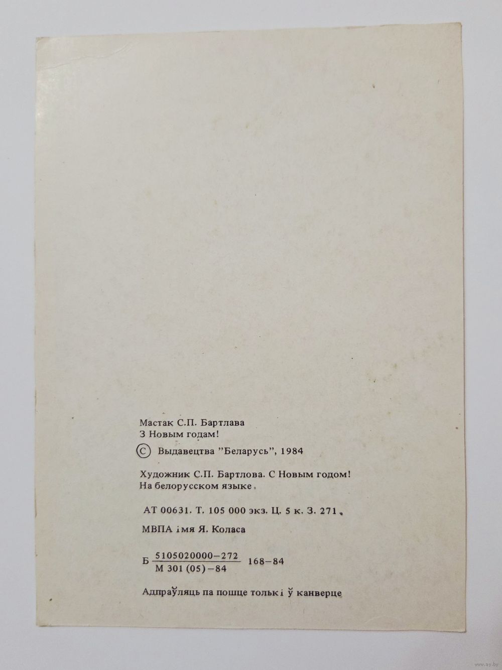 Бартлова С Новым годом 1984 малотиражная чистая открытка СССР (БССР, Беларусь)