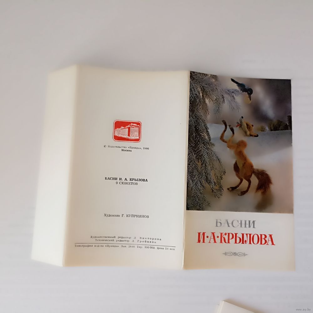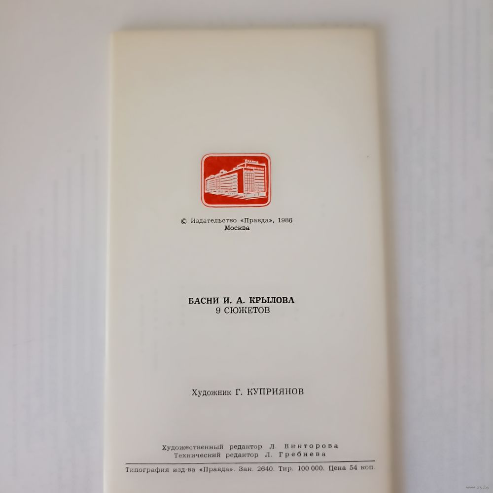 Басни И.А. Крылова 9 сюжетов Набор открыток худ. Куприянов 1986 год