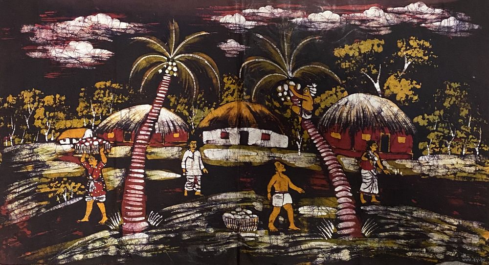 Индийский батик (рисунок по ткани), ручная работа, оригинал. Автор: Вина Лахумалани, Светлейшая Дама Ордена Британской Империи, 2012 год. Размеры: 900х500 мм.