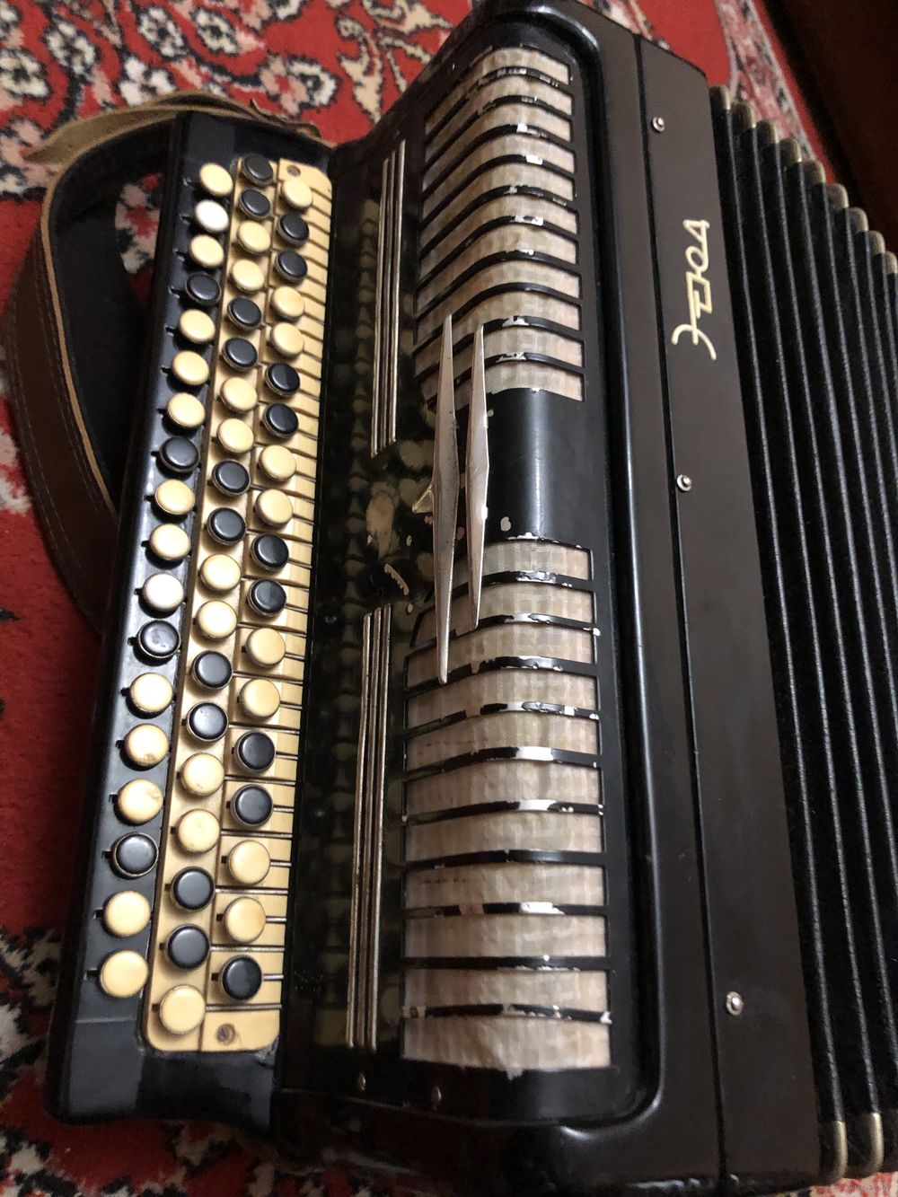 В хорошем состоянии, клавиши все нажимаются, компрессию держит хорошо, звук приятный, меха в отличном состоянии. Почта/европочта.