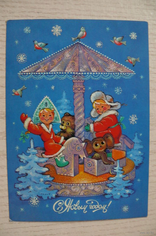 Базарова Н., С Новым годом! 1986, 1987, чистая, ДМПК (медведь, Чебурашка, снегири).