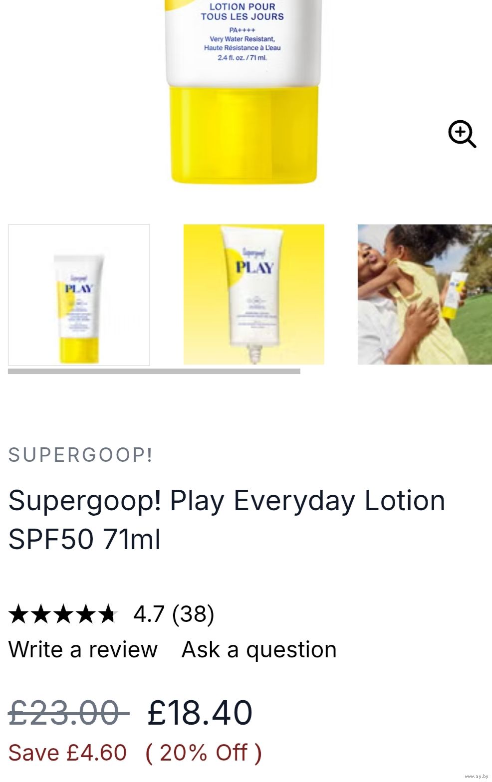 водоустойчивый лосьон для лица Supergoop! Play SPF50 Everyday Lotion with sunflower extract 71 ml