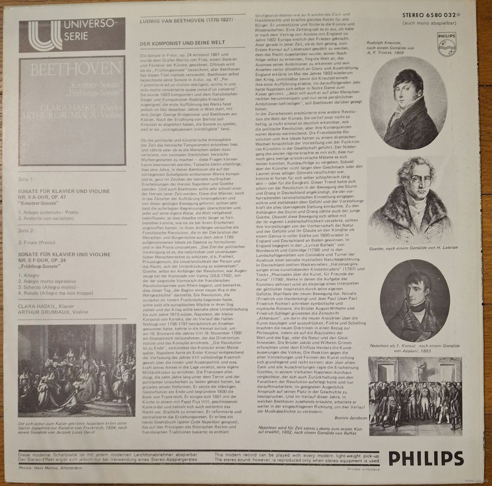 Beethoven, Clara Haskil, Arthur Grumiaux – "Kreutzer-Sonate" No. 9 / "Fruhlings-Sonate" No. 5