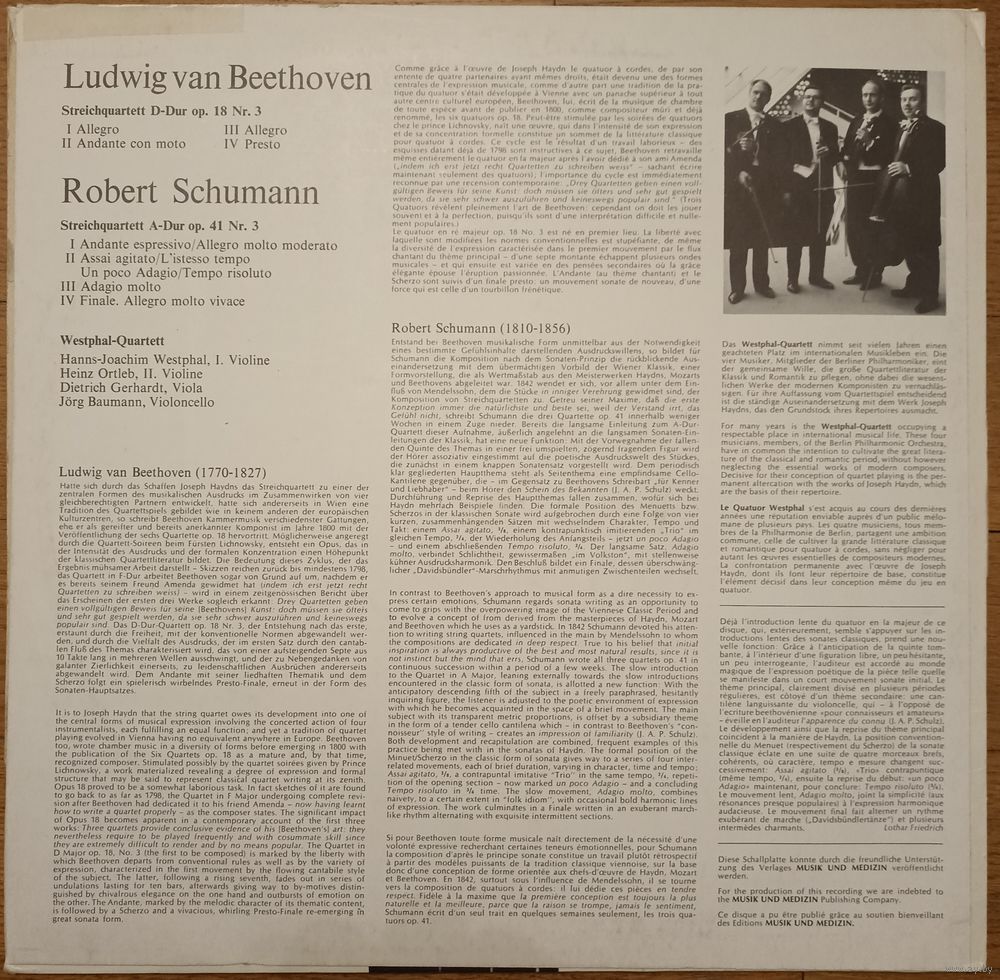Beethoven / Schumann, Westphal-Quartett – Streichquartett D-dur Op.18 Nr.3 / Streichquartett A-dur Op.41 Nr.3