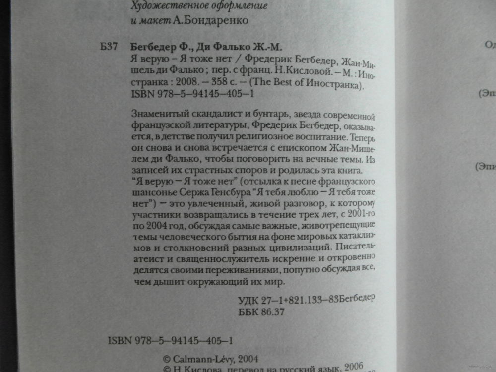 Знаменитый скандалист и бунтарь, звезда современной французской литературы, Фредерик Бегбедер, оказывается, в детстве получил религиозное воспитание. Теперь он снова и снова встречается с епископом Жан-Мишелем ди Фалько, чтобы поговорить на вечные темы. Из записей их страстных споров и родилась эта книга. Диалог между влиятельным католическим иерархом и убежденным атеистом, между опытным адвокатом Бога и непримиримым критиком всех возможных устоев, они беседуют на вечные темы - о судьбе и счастье, о любви и смерти, о церкви и молитве. Вечный спор верующего с неверующим, священника с писателем...