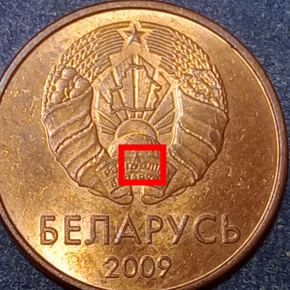 Беларусь 1 копейка 2009 Брак, раскол (скол)