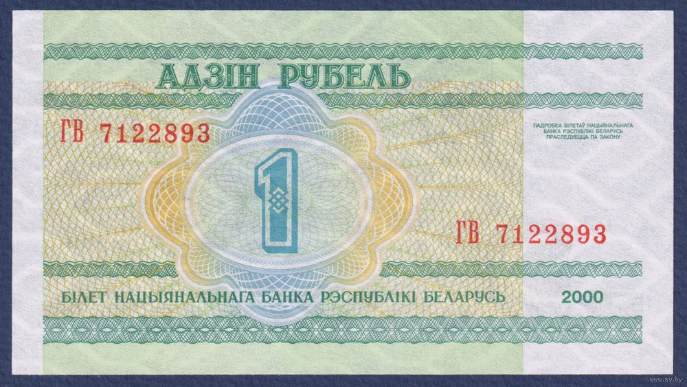 Беларусь, 1 рубль 2000 (2000) г, P-21 (серия ГВ), UNC