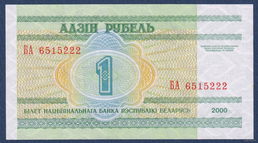 Беларусь, 1 рубль 2000 (2003) г, P-21 (серия БА), UNC