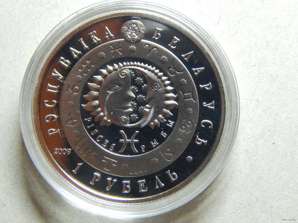Беларусь 1 рубль 2009г.Рыбы.Знаки Зодиака.