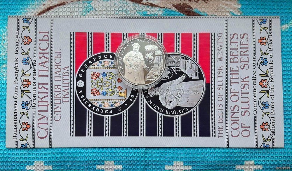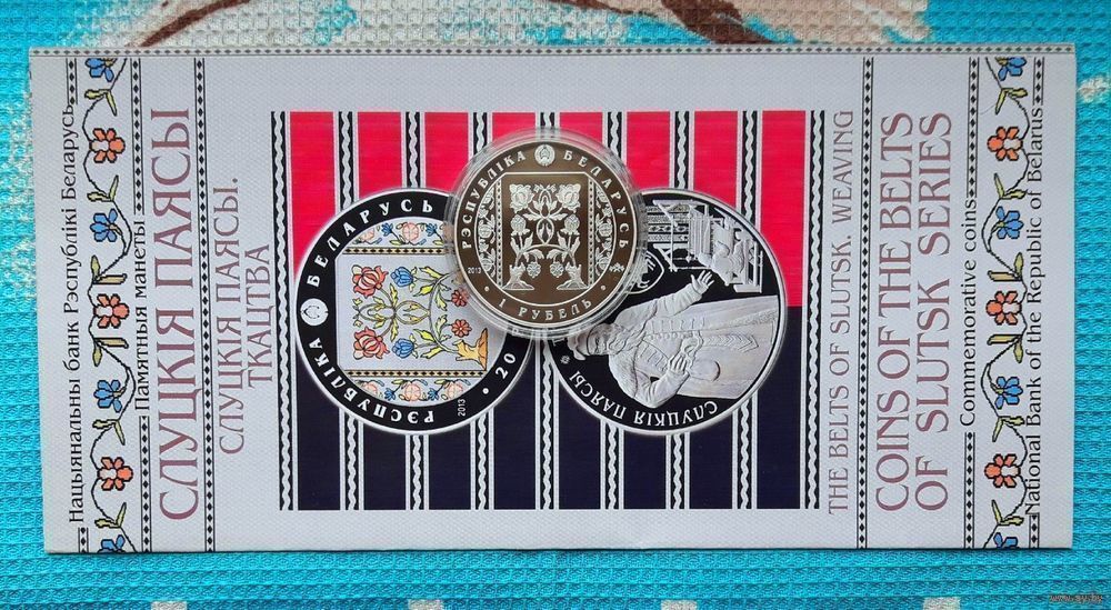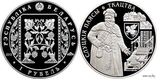 Беларусь 1 рубль 2013 года. Слуцкие пояса: ткачество. Cu-Ni 19.5 грамм. Буклет!