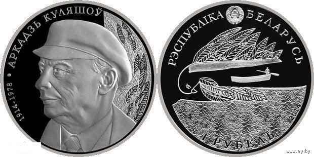 Беларусь 1 рубль 2014 года. Аркадий Кулешов. Cu-Ni 13.16 грамм. Буклет!